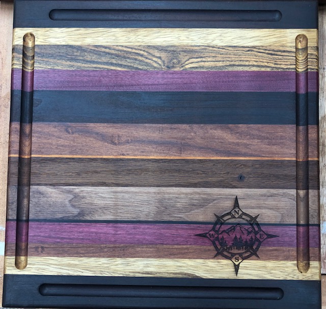 We use exotic & domestic hardwoods to create stunning kitchen boards. All boards can be engraved for a special occasion or memento. We offer 3 standard sizes of boards, 12×12, 12×16 and 12×20. All boards have routed juice grooves, rubber non-slip feet on the bottom and are hand rubbed with Howard Cutting Board Oil, a food safe mineral oil infused with vitamin E. We do offer special orders on boards up to 24×36 inches, so please ask.
